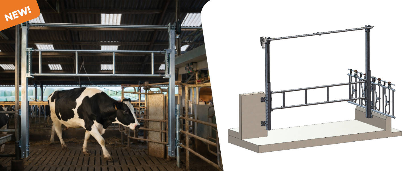 ElevateGate Manual pairs simplicity with strength, using a smooth counterweight lifting system and an easy catch-release mechanism. With an enclosed chain at animal height and two height variants, it provides clean, safe and reliable routing, a practical way to elevate your herd every day.